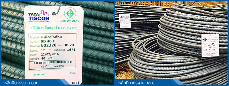 บริษัทจะใช้เหล็กแกนสำหรับโครงสร้างตั้งแต่ฐานราก ตอม่อ เสา และคาน เป็นเหล็กข้ออ้อย ชั้นคุณภาพ SD-40 ขึ้นไป เป็นเหล็กที่ได้ มาตรฐานผลิตภัณฑ์อุตสาหกรรม (มอก.) ตามรายการคำนวณของวิศวกร เป็นเหล็กเต็มทั้ง ขนาด, น้ำหนัก, การรับแรง โดยเริ่มที่ขนาด Ø12, Ø16, Ø20, Ø25 มม. ซึ่งเหล็กปลอกและเหล็กเสริมในพื้น เป็นเหล็กเส้นกลมชั้นคุณภาพ SR-24 เป็นเหล็กที่ได้ มอก. เช่นกัน