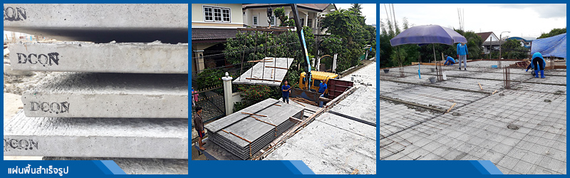 ใช้พื้นสำเร็จรูปท้องเรียบ (PLANK) หรือแบบสามขา โดยแต่ละแผ่นสามารถรับน้ำหนักจรปลอดภัย (LIVE LOAD) ได้ไม่น้อยกว่า 250 กิโลกรัมต่อตารางเมตรขึ้นไป หรือตามที่ระบุในวัสดุมาตรฐาน โดยใช้ของ PCM หรือ D-CON ที่มีตรา ‘‘มาตรฐานผลิตภัณฑ์อุตสาหกรรม’’ เท่านั้น