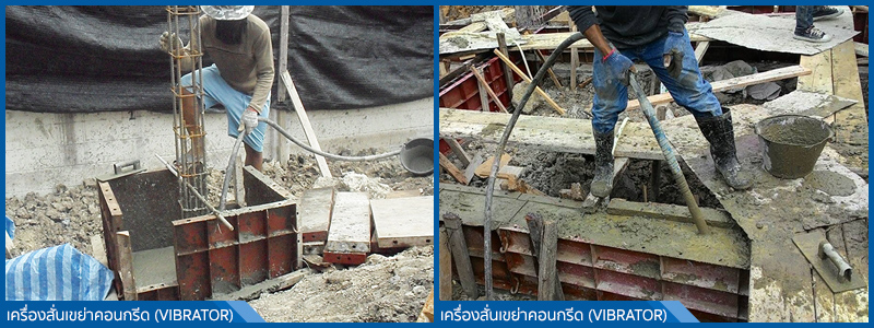 ในการเทคอนกรีตโครงสร้างหลัก ฐานราก, ตอม่อ, คาน, บันได, พื้นหล่อในที่ ทางบริษัทฯ จะใช้เครื่องสั่นเขย่าคอนกรีต (VIBRATOR) จี้คอนกรีตในระหว่างการเท เพื่อให้คอนกรีตแน่นสม่ำเสมอ สามารถลดฟองอากาศและน้ำในคอนกรีต โครงสร้างดังกล่าวจะรับกำลังได้ดีกว่า แข็งแรงกว่า สมบูรณ์กว่า มีอายุการใช้งานมากกว่า