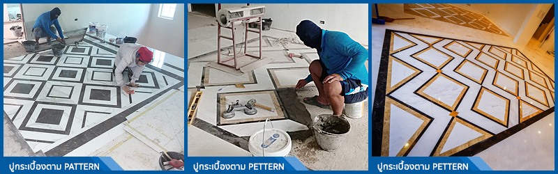 ทางบริษัทฯ ใช้ทีมช่างปูกระเบื้องโดยเฉพาะ โดยมีการจับฉากพื้นห้องในแต่ละครั้ง สำรวจแนวเศษกระเบื้องตามแบบสร้างจริง (SHOP DRAWING) ที่จะมีการทำแบบขึ้นมาทุกครั้ง ทุกห้อง เพื่อให้เจ้าของบ้านอนุมัติแบบการปูกระเบื้องก่อนปูจริงทุกครั้ง (อีกหนึ่งบริการจากเรา)